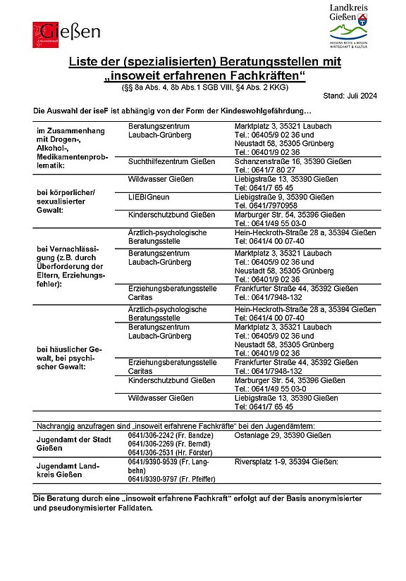 Liste Beratungsstellen